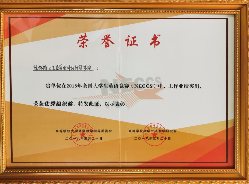 2018年全国大学英语竞赛(NECCS))优秀组织奖